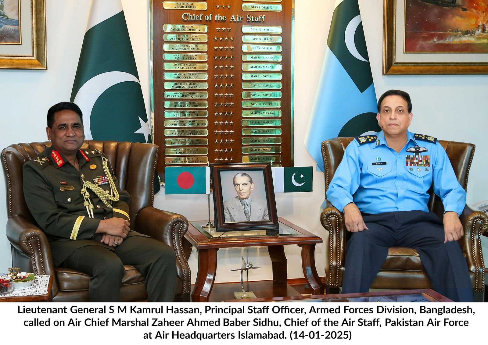 بنگلہ دیش کی مسلح افواج کے پرنسپل اسٹاف آفیسر لیفٹیننٹ جنرل ایس ایم قمر الحسن کا دورہ پاکستان۔۔۔۔ ائیر چیف مارشل ظہیر احمد بابر سے بنگلہ دیش کی مسلح افواج کے پرنسپل اسٹاف آفیسر کی ملاقات۔۔۔