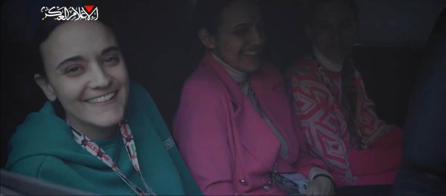 حماس کے عسکری ونگ القسام نے جنگ بندی معاہدے کی پاسداری کرتے ہوئے اسرائیل کی 3 قیدی خواتین کو رہا کر دیا۔۔۔ رہا ہونے والی تینوں خواتین مکمل طور پر صحت مند اور ہشاش بشاش تھیں۔۔۔