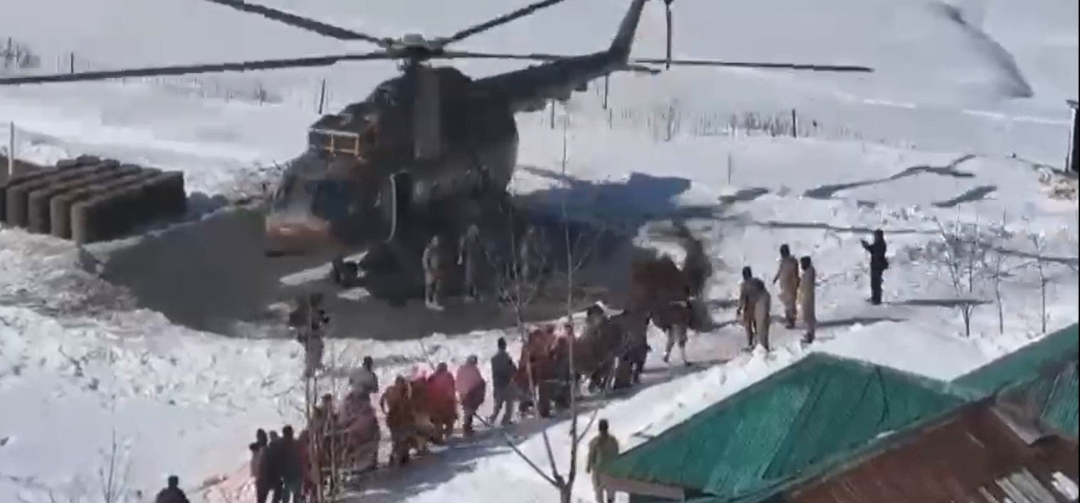 7 ڈاکٹروں کی ٹیم جس میں 2 ماہر امراض نسواں بھی شامل تھیں جنھیں مظفرآباد سے ہیلی کاپٹر کے ذریعے ہلمت منتقل کیا گیا ہے۔۔۔ڈاکٹروں کی یہ ٹیم برفباری کے موسم میں ہلمت اور تاؤبٹ کے لوگوں کو ضروری طبی امداد فراہم کرے گی