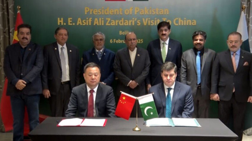 پاکستان اور چین نے قابل تجدید توانائی، سیمنٹ اور کھاد کی صنعت میں تعاون کو فروغ دینے کے لیے تین مفاہمتی یادداشتوں (MoUs) پر دستخط کیے ہیں۔ بیجنگ میں منعقدہ تقریب میں صدر آصف علی زرداری، نائب وزیر اعظم اور وزیر خارجہ اسحاق ڈار، اور وزیر اعلیٰ سندھ سید مراد علی شاہ سمیت اعلیٰ حکام شریک ہوئے۔