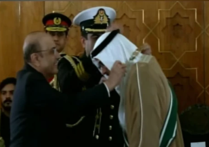 ولی عہد وزیراعظم ہاؤس سے ایوان صدر گئے جہاں ولی عہد ابوظبی کو ایوان صدر میں نشان پاکستان دینے کی تقریب منعقد ہوئی جس میں صدرمملکت آصف علی زرداری نے انہیں نشان پاکستان کے اعزاز سے نوازا۔