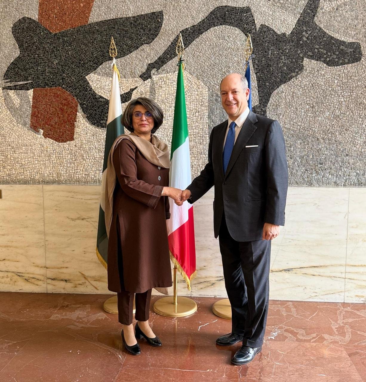 ترجمان دفترخارجہ شفقت علی خان کے مطابق پاک اٹلی سیاسی مشاورت کا چھٹا دور روم میں منعقد ہوا،،،، پاکستانی وفد کی قیادت سیکرٹری خارجہ آمنہ بلوچ نے کی جبکہ اطالوی وفد کی قیادت سیکرٹری جنرل ریکارڈو گواریگلیا نے کی ۔۔۔۔