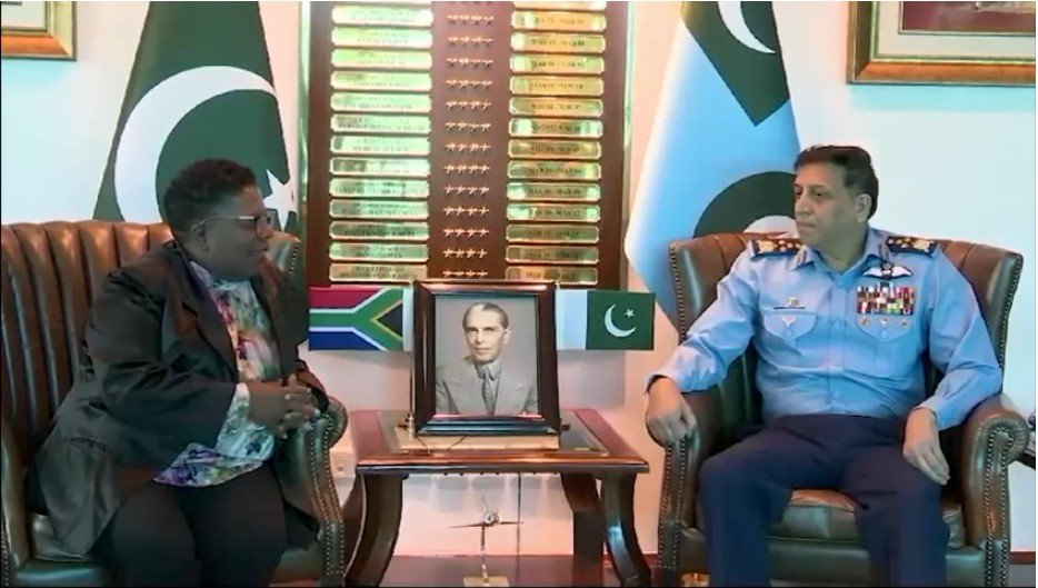 دونوں ممالک کی فضائیہ کے درمیان عسکری تعاون بڑھانے پر بات چیت کی گئی۔۔۔۔ڈاکٹر تھوبیکیلے گامیڈے کی پاک فضائیہ کی پیشہ ورانہ مہارت اور جدید ٹیکنالوجی کی تعریف۔۔جنوبی افریقہ نے پاک فضائیہ سے اہم ساز و سامان کی جدیدکاری اور سروسنگ میں تعاون کا اظہار بھی کیا