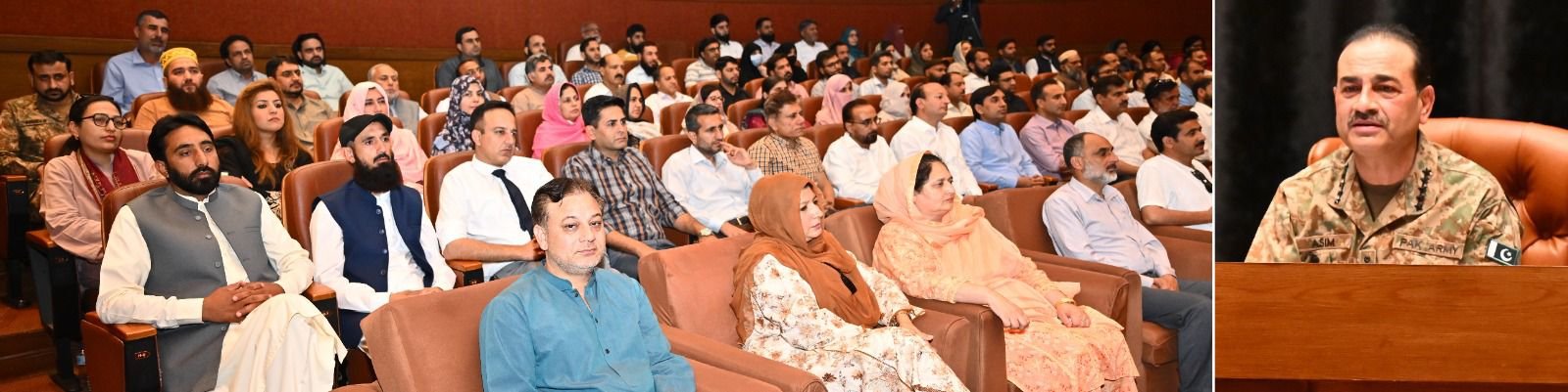 فیلڈ مارشل نے کہا کہ ہندوستان کی دہشت گردی اس کا اندرونی مسئلہ ہے اور اس کی جڑ اقلیتوں خصوصاً مسلمانوں پر ظلم اور تعصب ہے۔ بلوچستان کے حوالے سے انہوں نے واضح کیا کہ "دہشت گرد فتنہ الہندوستان ہیں، ان کا بلوچوں سے کوئی تعلق نہیں۔ہمیں پاکستان کو ایسی مضبوط ریاست بنانا ہے جہاں تمام ادارے آئین کے مطابق، بغیر کسی دباؤ، صرف عوام کی فلاح کے لیے کام کریں۔ فیلڈ مارشل نے کہا کہ جو عناصر ریاست کو کمزور بنانے کی کوشش کریں گے، ان کا بیانیہ مسترد کیا جائے گا۔ اس موقع پر شرکاء نے اپنے تاثرات میں کہا کہ یہ جو محفوظ دھرتی ہے، اس کے پیچھے وردی ہے، ہمیں پاکستان اور اپنی مسلح افواج پر فخر ہے اور ہم ہمیشہ ان کے شانہ بشانہ کھڑے رہیں گے۔
