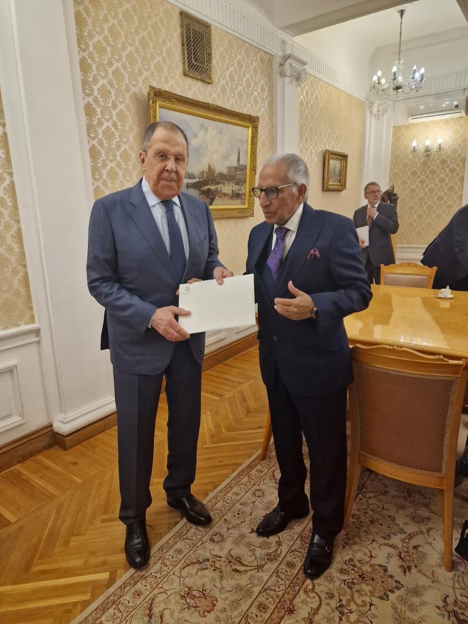 طارق فاطمی نے صدر ولادیمیر پیوٹن کے نام وزیراعظم شہباز شریف کا خط بھی روسی وزیر خارجہ کو پہنچایا۔۔