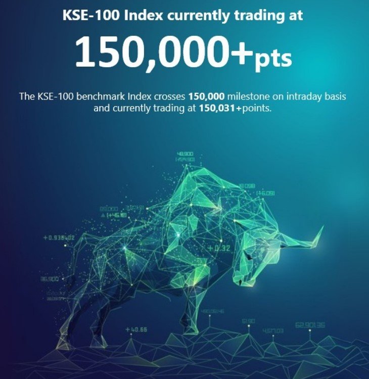 پاکستان اسٹاک مارکیٹ میں پے در پے نئے ریکارڈز بننے کا سلسلہ جاری ہے۔۔ کاروباری ہفتے کے دوسرے روز ہنڈرڈ انڈیکس نے ڈیڑھ لاکھ پوائنٹس کی نئی تاریخ رقم کر دی ۔۔۔۔۔