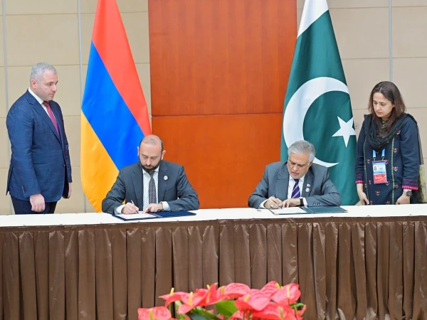 چین کے شہر تیانجن سے ترجمان دفترخارجہ کی جانب سے جاری اعلامیے میں کہا گیا ہے کہ نائب وزیراعظم اور وزیرخارجہ اسحاق ڈار نے آرمینیا کے وزیرخارجہ ارارات میرزویان کے ساتھ باقاعدہ مشترکہ دستاویزات کا تبادلہ کیا اور اس کے ساتھ دونوں ممالک کے درمیان سفارتی تعلقات قائم ہوگئے ہیں۔