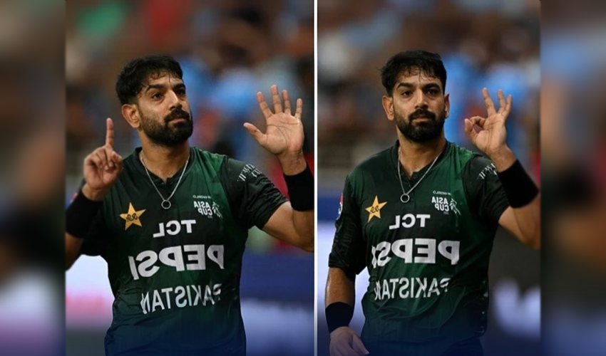 پاک بھارت میچ کے دوران باؤنڈری لائن پر کھڑے پاکستانی بولرحارث روف کو بھارتی تماشائیوں نے ہوٹ کیا،اس ہوٹ کے جواب میں حارث روف نے ہاتھ کے اشارے میں بھارتی رافیل جنگی جہاز گرائے جانے کی نقل اتاری۔