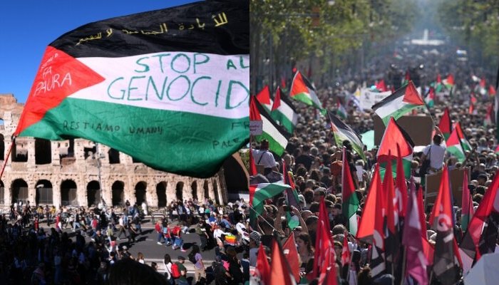 اٹلی کے دارالحکومت روم میں چوتھے روز بھی غزہ کے لیے احتجاج ہوا اور شہریوں نے اطالوی حکومت سے فلسطینیوں کی نسل کُشی رُکوانے کا مطالبہ کیا۔
