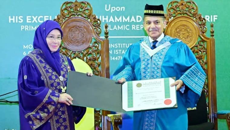 وزیراعظم شہباز شریف کو پی ایچ ڈی کی اعزازی ڈگری دینے کی تقریب ملائیشیا کی ریاست پہانگ میں منعقد ہوئی، جس میں پہانگ کی ملکہ تنکو عزیزہ آمینہ میمونہ اسکندریہ نے انہیں اعزازی ڈگری سے نوازا۔