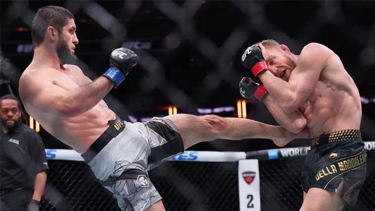 نیویارک — میڈیسن اسکوائر گارڈن کی روشنیاں، گونجتی ہوئی آوازیں اور ہزاروں مداحوں کی نظر ایک ہی شخص پر—اسلام مخاشیف! داغستان سے تعلق رکھنے والے یہ فائٹر یو ایف سی کی تاریخ میں ایک اور شاندار باب رقم کرتے ہوئے ڈبل بیلٹ چیمپئنز کی صف میں شامل ہو گئے۔