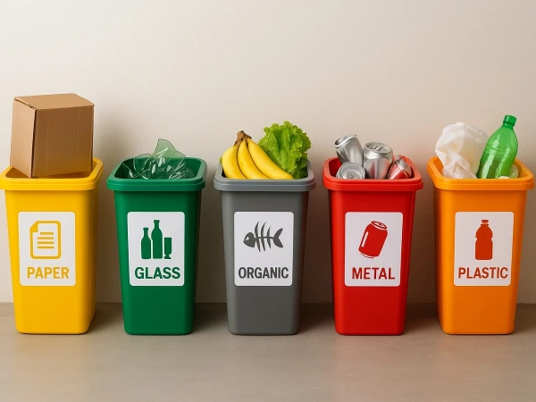 پیلا بِن صرف کاغذ، کارٹن اور پیکجنگ ویسٹ کے لیے ہوگا، سبز بِن میں شیشہ اور شیشے سے بنی اشیا جمع کی جائیں گی، سرمئی بِن آرگینک اور بائیوڈیگریڈیبل کچرے کے لیے مخصوص ہے، سرخ بِن میں ٹِن، المونیم اور دیگر دھاتیں رکھی جائیں گی جبکہ اورنج بِن پلاسٹک ویسٹ جیسے بوتلیں، ریپرز اور ڈسپوزیبل آئٹمز کے لیے مختص ہوگا۔
