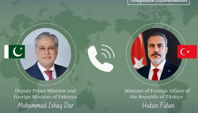 نائب وزیراعظم و وزیر خارجہ اسحاق ڈار اور ترکیہ کے وزیر خارجہ ہاکان فیدان کے درمیان ٹیلیفونک رابطہ ہوا جس میں پاکستان اور افغانستان کے درمیان حالیہ صورتحال پر تفصیلی تبادلہ خیال کیا گیا۔