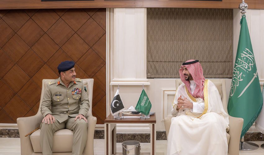 فیلڈ مارشل اور چیف آف ڈیفنس فورسز سید عاصم منیر نے سعودی وزیر دفاع شہزاد خالد بن سلمان سے ملاقات کی جس میں ایران کے ڈرون اور میزائل حملوں سے پیدا ہونے والی سکیورٹی صورتحال پر تبادلہ خیال کیا گیا۔