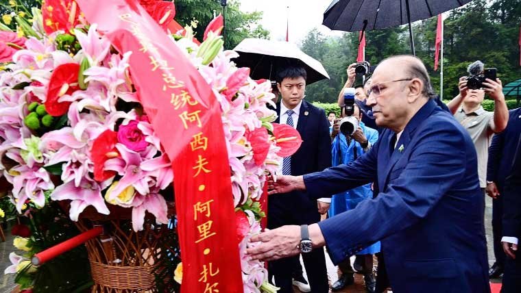 صدر زرداری کا شاؤشان میں ماؤ زے تُنگ کے مجسمے پر گلدستہ رکھ کر خراجِ عقیدت